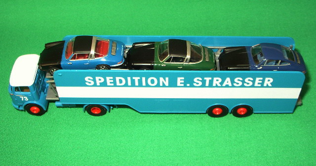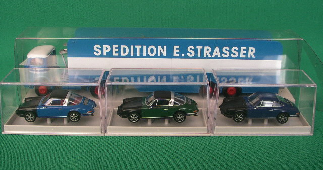 Autotransporter "Strasser" mit 2x Porsche 911 Targa, 1x Porsche 911 Coupé